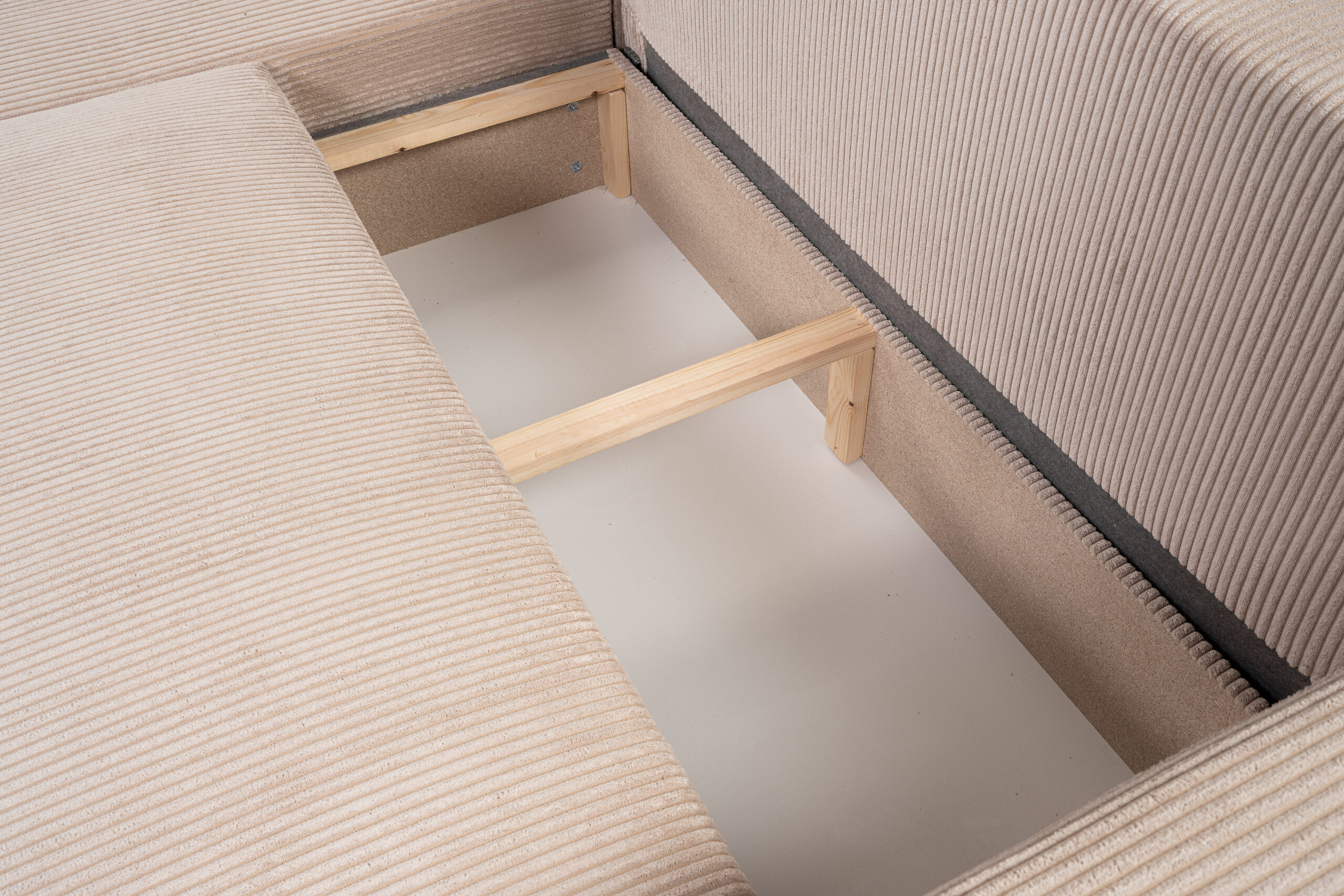 - Pojemny schowek – idealny na pościel, koce czy zabawki dzieci.