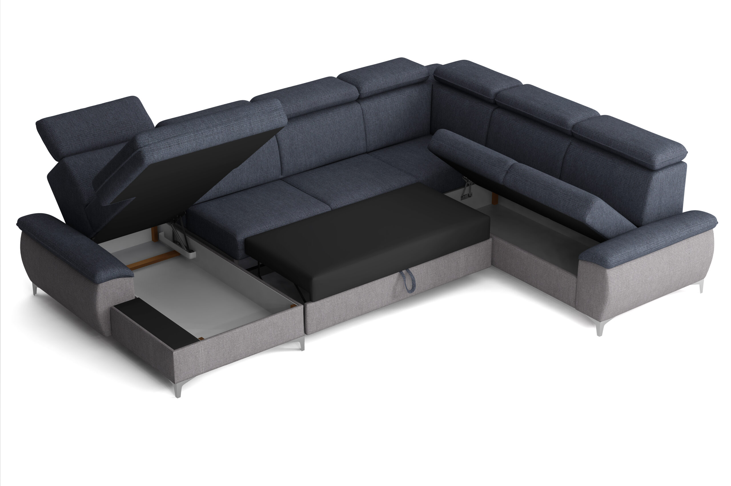 Narożnik MAGIC D to idealne połączenie wygody i stylu. Jego nowoczesna forma w duchu loftowym przyciąga wzrok, a praktyczne rozwiązania czynią go niezastąpionym elementem salonu. Dzięki regulowanym zagłówkom, dużej powierzchni spania oraz pojemnemu schowkowi, model ten świetnie sprawdzi się zarówno podczas codziennych chwil relaksu, jak i wtedy, gdy potrzebujesz dodatkowego miejsca noclegowego dla gości.